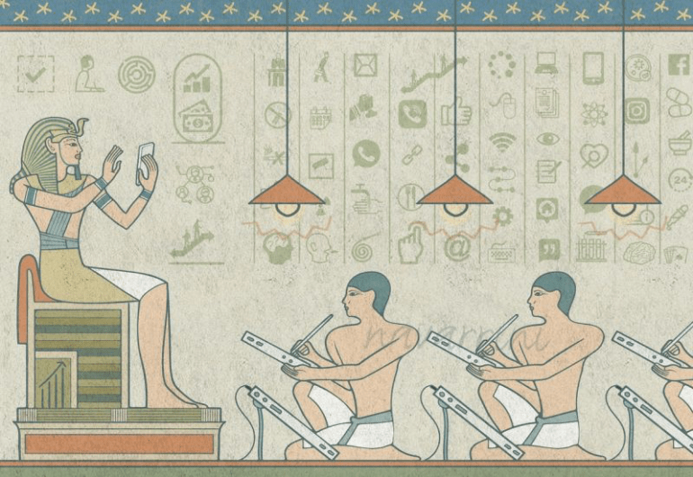 Queste narrazioni sono state proposte come verità assolute e immutabili già dalle prime grandi società antiche. Tanto immutabili che, all’epoca dei faraoni Egizi, con lo sviluppo della scrittura, venivano narrate incidendole sulla pietra dei Templi a loro dedicati, che ancora le serbano come fossero le biblioteche o gli archivi storici del tempo. Ma lo sviluppo demografico ha portato a generare regole di convivenza che sono diventate sempre più complesse, spingendo verso un rinnovamento continuo di queste narrazioni e rendendo quindi necessaria la produzione di importanti apparati burocratici con tutte le loro infrastrutture per gestirne la manutenzione.